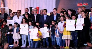 دمشق-سانا بمناسبة عيد الشهداء كرمت محافظة دمشق بالتنسيق مع مديرية شؤون الشهداء والجرحى والمفقودين في وزارة الدفاع عدداً من أسر الشهداء وجرحى الجيش العربي السوري خلال مأدبة إفطار بنادي المحافظة الرياضي في كفرسوسة. وتم تكريم 160 عائلة شهيد و27 من …