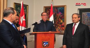 دمشق-سانا أقامت سفارة جمهورية كوبا بدمشق حفل استقبال مساء اليوم بمناسبة الذكرى الحادية والستين لانتصار الثورة الكوبية وذلك في مقر إقامة السفير. وأكد السفير الكوبي بدمشق ميغيل بورتو بارغا في كلمة له عمق العلاقات والروابط التاريخية التي تجمع كوبا وسورية …