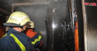 دمشق-سانا أخمد عناصر فوج إطفاء دمشق حريقا نشب اليوم داخل منزل في منطقة المزة. وذكر مصدر في قيادة الشرطة لمندوبة سانا أن ماسا كهربائيا تسبب بنشوب الحريق في منزل عند طلعة مطعم على كيفك في منطقة المزة مضيفا إن عناصر …