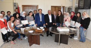 دمشق-سانا كرمت جامعة دمشق اليوم 25 طالبا وطالبة من قسم الجغرافيا في كلية الأداب ممن شاركوا في معرض “حلب تنتصر” حيث رصدوا فيه المباني والمواقع الأثرية والتاريخية المتضررة والمدمرة جراء اعتداءات التنظيمات الإرهابية في أحياء حلب القديمة وعدد من المناطق السورية. …