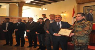 دمشق-سانا تقديرا لتميزهم وتصديهم للهجمة الإعلامية الشرسة التي استهدفت سورية والتغطية الميدانية لبطولات وانتصارات الجيش العربي السوري على التنظيمات الارهابية المسلحة ينظم اتحاد الصحفيين المنتدى الإعلامي “المراسل الحربي شريك بالانتصار” وذلك على مسرح نقابة الفنانين بحلب في الخامس من شباط. وبين رئيس …