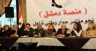 دمشق- سانا جدد أعضاء اللجنة التنفيذية ل”منصة دمشق” التأكيد على أهمية صون السيادة الوطنية ووحدة الأرض والشعب السوري ورفض التدخلات الخارجية في الشؤون السورية الداخلية . جاء ذلك في مؤتمر صحفي عقده اليوم أعضاء اللجنة اليوم في فندق قصر القيصر …