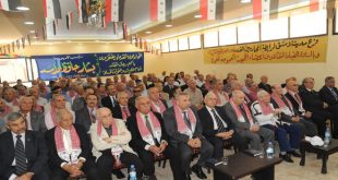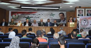 دمشق-سانا ناقش المؤتمر السنوي العام للجمعية العمومية لفرع رابطة المحاربين القدماء بدمشق اليوم التقارير المقدمة حول الشؤون السياسية والتنظيمية والمالية والاجتماعية والثقافية لعامي 2015-2016 وذلك في مقر الرابطة بدمشق. وخلال أعمال المؤتمر الذي انعقد تحت عنوان “كلنا مع سيد الوطن …