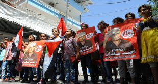 دمشق-سانا نظمت الجبهة الشعبية لتحرير فلسطين/القيادة العامة اليوم وقفة تضامنية مع الأسرى الفلسطينيين في سجون الاحتلال الإسرائيلي أمام مقر الأمم المتحدة بالمزة وتنديدا بالصمت الدولي “المطبق” تجاه الممارسات اللاإنسانية التي يرتكبها الاحتلال بحقهم. وردد المشاركون الذين رفعوا أعلام فلسطين وسورية …