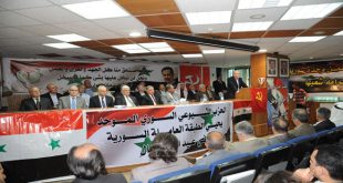 دمشق-سانا أكد المشاركون في الحفل الخطابي الذي نظمه اليوم الحزب الشيوعي السوري الموحد في مبنى اتحاد عمال دمشق دور الطبقة العاملة في الحفاظ على صمود الشعب السوري واقتصاده الوطني عبر الاستمرار بالعمل والإنتاج وحماية مؤسساتهم. وخلال الاحتفال الذي أقيم بمناسبة …