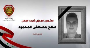 درعا-سانا استشهد أحد عناصر قوى الأمن الداخلي برصاص إرهابيين أثناء عودته من عمله في ناحية داعل بريف درعا الشمالي.