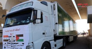 درعا-سانا وصلت اليوم إلى الأراضي السورية عبر معبر نصيب الحدودي في ريف درعا شاحنة مساعدات إغاثية تحمل 28 طناً من المواد الغذائية