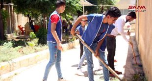 درعا-سانا أطلقت رابطة الشهيد أمين النجار التابعة لفرع اتحاد شبيبة الثورة بدرعا اليوم حملة نظافة بعنوان “مدينتي بيتي الثاني”