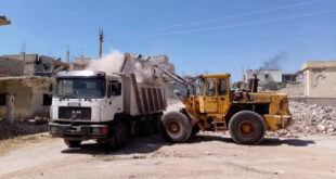 درعا-سانا نفذت آليات مجلس مدينة درعا أعمال ترحيل الأنقاض والردميات من حي المنشية في منطقة درعا البلد ضمن حملة تنظيف، ورفع