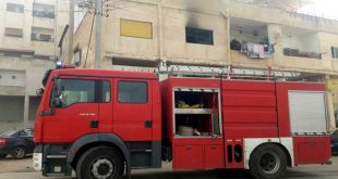 درعا-سانا أخمد فوج إطفاء درعا اليوم حريقاً نشب في منزل أحد المواطنين خلف مجمع اليمامة وسط مدينة