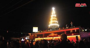 حمص ودرعا-سانا أضاءت الفعاليات الأهلية والشبابية مساء اليوم شجرة الميلاد بباحة كنيسة السيدة العذراء أم الزنار في حمص القديمة بمناسبة اقتراب أعياد الميلاد المجيدة. وعلى أنغام ميلادية لفرقة كشافة أم الزنار وبحضور حشد أهلي واسع تمت إضاءة الشجرة التي زينت …