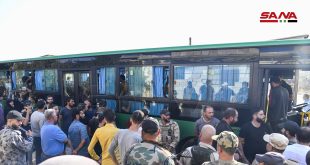 درعا-سانا خرجت بعد ظهر اليوم دفعة من الإرهابيين الرافضين لاتفاق التسوية من حي درعا البلد بمدينة درعا مع عدد من أفراد عائلاتهم تمهيدا لإنهاء سيطرة الإرهاب على الحي وعودة جميع مؤسسات الدولة والخدمات إليه. ولفت مراسل سانا الحربي في درعا …
