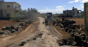 درعا-سانا أزالت ورشات مديرية الخدمات الفنية ومجلس مدينة درعا اليوم السواتر الترابية والحواجز من المنطقة الصناعية