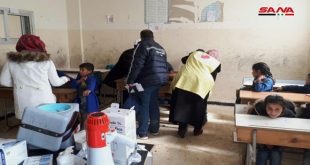 درعا-سانا تواصل حملة اللقاح المدرسي في محافظة درعا جولتها على المدارس للوصول إلى 68 ألف تلميذ من الصفين الأول والسادس في مرحلة التعليم الأساسي وتحصينهم ضد أمراض الكزاز والدفتيريا وشلل الأطفال. وتتشارك مديريتا الصحة والتربية في تنفيذ الحملة حسب مسؤول …