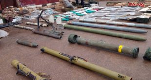 درعا-سانا عثرت الجهات المختصة خلال تمشيط المناطق المطهرة من الإرهاب في مزارع منطقة درعا البلد على طائرة استطلاع مسيرة وأسلحة وقذائف بعضها غربية المنشأ من مخلفات التنظيمات الإرهابية. وأفادت مراسلة سانا في درعا بأن الجهات المختصة عثرت خلال متابعتها تأمين المناطق …