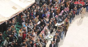 درعا-سانا تمت تسوية أوضاع المئات من العسكريين الفارين من أبناء محافظة درعا مستفيدين من مرسوم العفو تمهيداً للالتحاق بالقطعات والتشكيلات العسكرية وذلك وسط احتفال جماهيري أقيم في بلدة إبطع اليوم وبمشاركة فعاليات شعبية وأهلية ورسمية. وذكرت مراسلة سانا في درعا …