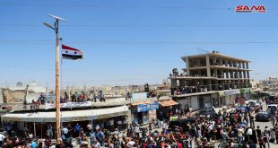 درعا-سانا بعد إعلانها آمنة شهدت مدينة نوى بريف درعا الشمالي اليوم رفع العلم الوطني في ساحتها الرئيسة وسط تجمع المئات من أبنائها المحتفلين بالنصر على الإرهاب. الأهالي الذين حملوا الأعلام الوطنية وصور السيد الرئيس بشار الأسد وهتفوا للوطن وللجيش العربي …