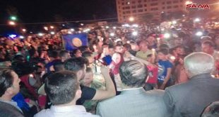 درعا-سانا شهدت بلدة المسيفرة بريف درعا الشرقي اليوم تجمعاً شعبياً احتفاء بانتصارات وبطولات الجيش العربي السوري الذي بات قاب قوسين أو أدنى من إعلان المحافظة خالية من الإرهاب. ورفع أهالي البلدة الذين احتشدوا في ساحة الشهداء علم الجمهورية العربية السورية …