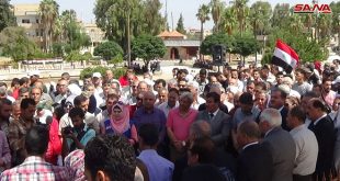 درعا-سانا تجمع مئات المواطنين في ساحة 16 تشرين وسط مدينة درعا تأكيدا على مواقفهم الداعمة للجيش العربي السوري وتحية له على بطولاته وتضحياته التي قدمها لتحرير الريف الشرقي والغربي من الإرهاب التكفيري. ورفع المشاركون في التجمع الأعلام الوطنية وصور السيد …