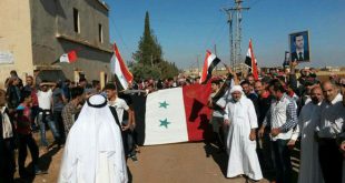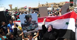 درعا-سانا تجمع المئات من أهالي بلدة داعل بريف درعا الشمالي في الساحة الرئيسية للبلدة اليوم تأكيدا على مواقفهم الداعمة للجيش العربي السوري وتحية له على بطولاته وتضحياته التي قدمها لتحريرهم من الإرهاب التكفيري. وخلال التجمع رفع عناصر من الجيش علم …