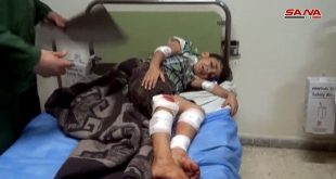 درعا-سانا أصيب مدني بجروح جراء اعتداء المجموعات الإرهابية المرتبطة بتنظيم جبهة النصرة بقذيفة صاروخية على منازل المواطنين في حي الكاشف الشرقي بمدينة درعا. وذكر مصدر طبي في المشفى الوطني لمراسل سانا في درعا أن “مواطنا يبلغ من العمر 61 عاما …