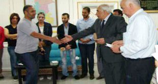 درعا-سانا كرمت محافظة درعا اليوم عددا من الإعلاميين العاملين في وسائل الإعلام الوطنية بالمحافظة وذلك في صالة المجمع الحكومي بالمدينة. وأكد محافظ درعا محمد خالد الهنوس دور وسائل الإعلام الوطنية في تغطية الأحداث وإظهار الصور الحقيقية للمحافظة ولا سيما في …