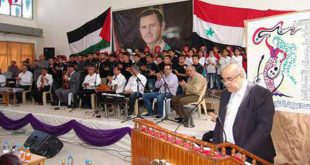 درعا-سانا دعا المشاركون في المهرجان الخطابي الذي اقيم اليوم في درعا بمناسبة الذكرى الثانية والخمسين لانطلاقة الجبهة الشعبية لتحرير فلسطين/القيادة العامة إلى تنسيق الجهود تجاه الاعتداءات المتكررة للعدو الإسرائيلي على الشعب الفلسطيني في الأراضي المحتلة وإعادة إحياء عملية الخالصة الاستشهادية …