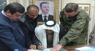 درعا- سانا في إطار المصالحات المحلية وقع وجهاء ورؤساء بلديات وجمعيات فلاحية ومخاتير 14 بلدة وقرية في ريف درعا اليوم على وثائق تؤكد تكثيف العمل والجهود لمنع المظاهر المسلحة وعدم السماح للمسلحين بالدخول إلى بلداتهم وقراهم. والقرى والبلدات التي وقعت …