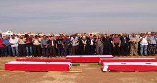 درعا-سانا وسط حضور رسمي وشعبي تم اليوم تشييع الشهداء الأطفال الخمسة الذين ارتقوا أمس جراء اعتداء التنظيمات الإرهابية على مدرسة ذات النطاقين للتعليم الأساسي من المشفى الوطني في مدينة درعا إلى مثواهم الأخير. وأكد محافظ درعا محمد خالد الهنوس أثناء …