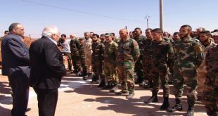 درعا-سانا بمناسبة الذكرى الـ 43 لحرب تشرين التحريرية قام محافظ درعا محمد خالد الهنوس بزيارة الكتيبة الطوعية التابعة للواء الطوعي في المنطقة الجنوبية في بلدة نامر بريف درعا. وتابع المحافظ خلال الزيارة التي رافقه فيها أمين فرع درعا لحزب البعث …