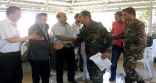 درعا-سانا كرم فرع الاتحاد الوطني لطلبة سورية بدرعا اليوم 150 من ضباط وصف ضباط وجنود أحد التشكيلات العسكرية العاملة في محافظة درعا وذلك وفاء لبطولات وتضحيات الجيش والقوات المسلحة في الدفاع عن الوطن ومحاربة الإرهاب. وأشار رئيس المكتب الإداري لفرع …