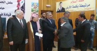 درعا-سانا أكد المشاركون في ملتقى استثنائي لرجال دين في درعا والسويداء أن دعم الجيش العربي السوري الذي يواجه الإرهاب ضرورة وطنية وأن أداء خدمة العلم هي “واجب شرعي” على الجميع لمواجهة ودحر التنظيمات الإرهابية التكفيرية عن كامل تراب الوطن. ولفت …