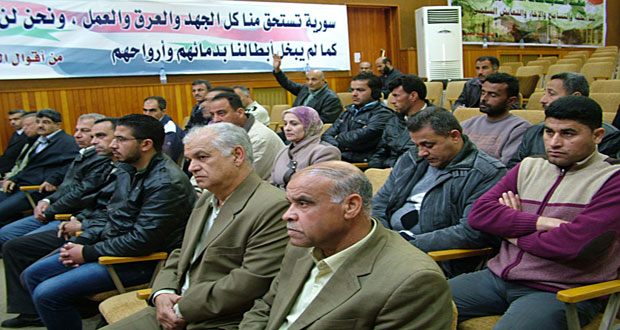 درعا-سانا دعا المشاركون في مؤتمر رؤساء الجمعيات والروابط الفلاحية في درعا اليوم إلى رفع مخصصات الآليات الزراعية من مادة المازوت وتأمين مستلزمات الانتاج الزراعي من أدوية وصهاريج لرش المبيدات وجرارات لزوم تنفيذ خطة الزراعة الصيفية القادمة. وطالب المشاركون بزيادة مخصصات …