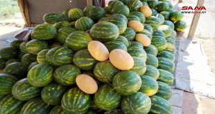 درعا-سانا باشر مزارعو درعا بجني محصول البطيخ الأحمر والأصفر المغطى، الذي بدأ يتوافر