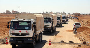 درعا-سانا وصلت إلى محافظة السويداء اليوم، قافلة مساعدات إنسانية مقدمة من منظمة الهلال الأحمر العربي السوري، عبر معبر بصرى الشام، ضمن