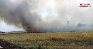درعا-سانا أخمد أهالي بلدة الطيبة حريقاً نشب في أحد حقول القمح على طريق الطيبة – كحيل بريف درعا الشرقي.