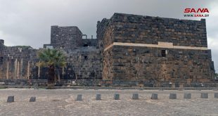 درعا-سانا أنهت الورشات الفنية والمعمارية لدى المديرية العامة للآثار والمتاحف أعمال الترميم وإعادة التأهيل للبرج الثاني في قلعة بصرى الشام الأثرية