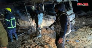 دير الزور-سانا استشهد 25 مواطنا وأصيب 13 آخرون بجروح بعد ظهر اليوم جراء هجوم إرهابي على حافلتهم في منطقة كباجب على الطريق بين دير الزور وتدمر. وذكر مراسل سانا أنه حوالي الساعة الرابعة من بعد ظهر اليوم تعرض بولمان على …