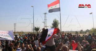دير الزور-سانا تنديداً بالعدوان التركي على الأراضي السورية نظم أهالي قرية الجفرة وحي هرابش بدير الزور ظهر اليوم وقفة احتجاجية أمام بوابة مطار دير الزور العسكري أيقونة الصمود ضد الإرهاب موجهين التحية لرجال الجيش العربي السوري ومطالبين بخروج القوات الأمريكية …