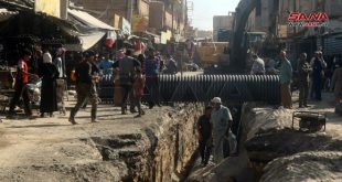 دير الزور-سانا بدأ مجلس مدينة الميادين بريف دير الزور تنفيذ مشروع استبدال شبكة الصرف الصحي الرئيسية في شارع