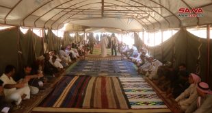 دير الزور-سانا تحت شعار (سورية موحدة مستقلة) عقدت قبائل وعشائر وادي الفرات في مدينة الميادين بريف دير الزور ملتقى العشائر