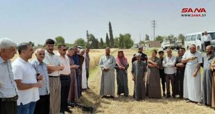دير الزور-سانا أقام مركز البحوث العلمية الزراعية في دير الزور يوماً حقلياً في أحد حقول القمح في بلدة مراط