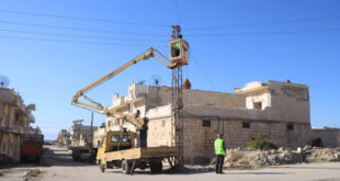 إدلب-سانا يواصل عمال ورشات الصيانة في الشركة العامة لكهرباء إدلب إصلاح الأعطال الكهربائية، ومد خطوط توتر متوسطة