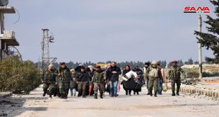 إدلب-سانا أمنت وحدات الجيش العربي السوري اليوم خروج عدد من العائلات قادمة من مناطق انتشار الإرهابيين في قرى جبل الزاوية عبر الممر الإنساني غرب بلدة معرة النعمان بريف إدلب الجنوبي إلى المناطق الآمنة التي حررها الجيش من الإرهاب بالتوازي مع …