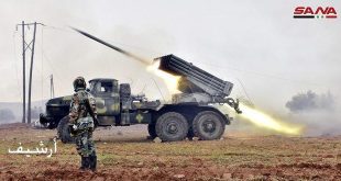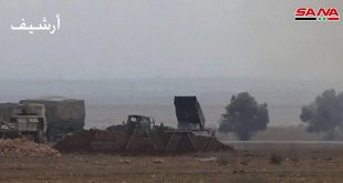 حلب وإدلب-سانا ردت وحدات من الجيش العربي السوري على اعتداءات المجموعات الإرهابية المتكررة على الأحياء السكنية في مدينة حلب والمناطق الآمنة بريف إدلب ودمرت بضربات مركزة منصات إطلاق صواريخ ومدافع هاون لتلك المجموعات في ريفي حلب الغربي والجنوبي الغربي وريف …