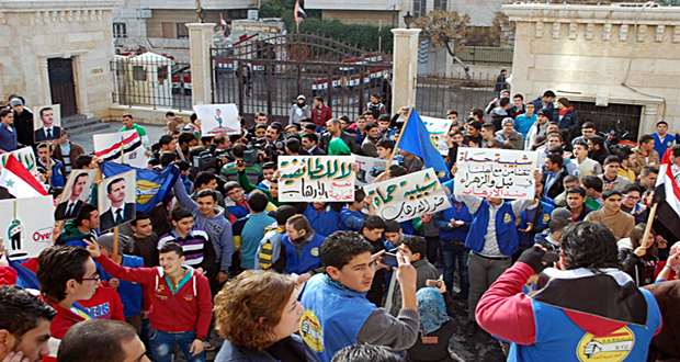 حماة-سانا نفذت فعاليات أهلية ونقابية وشبابية وطلابية وحزبية في محافظة حماة اليوم وقفة وطنية تضامنية دعما لأهالي بلدتي نبل والزهراء في شمال محافظة حلب اللتين تتعرضان لاعتداءات وحصار من قبل التنظيمات الإرهابية المسلحة. ورفع المشاركون بالوقفة التضامنية أمام مقر فرع …