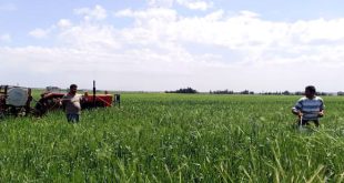 حماة-سانا تستمر عمليات مكافحة الصدأ وحشرة السونة في الأراضي المزروعة بمحصول القمح في محافظة حماة