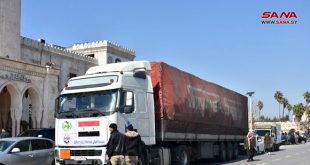 حماة-سانا استلمت محافظة حماة اليوم قافلة مساعدات غذائية وإغاثية من الفعاليات الشعبية والأهلية