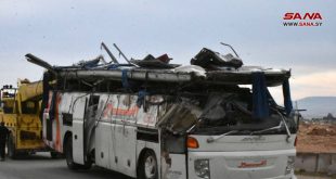 حماة-سانا توفي 4 أشخاص وأصيب 25 آخرون بجروح، واحد منهم إصابته خطيرة في حادث تدهور حافلة نقل ركاب على أوتوستراد حماة حلب