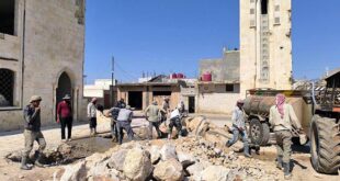 حماة-سانا بدأت منظمة فتح دار التركية اليوم، عمليات ترميم مسجد حلفايا الكبير بمدينة حماة الذي تعرض للقصف والتدمير